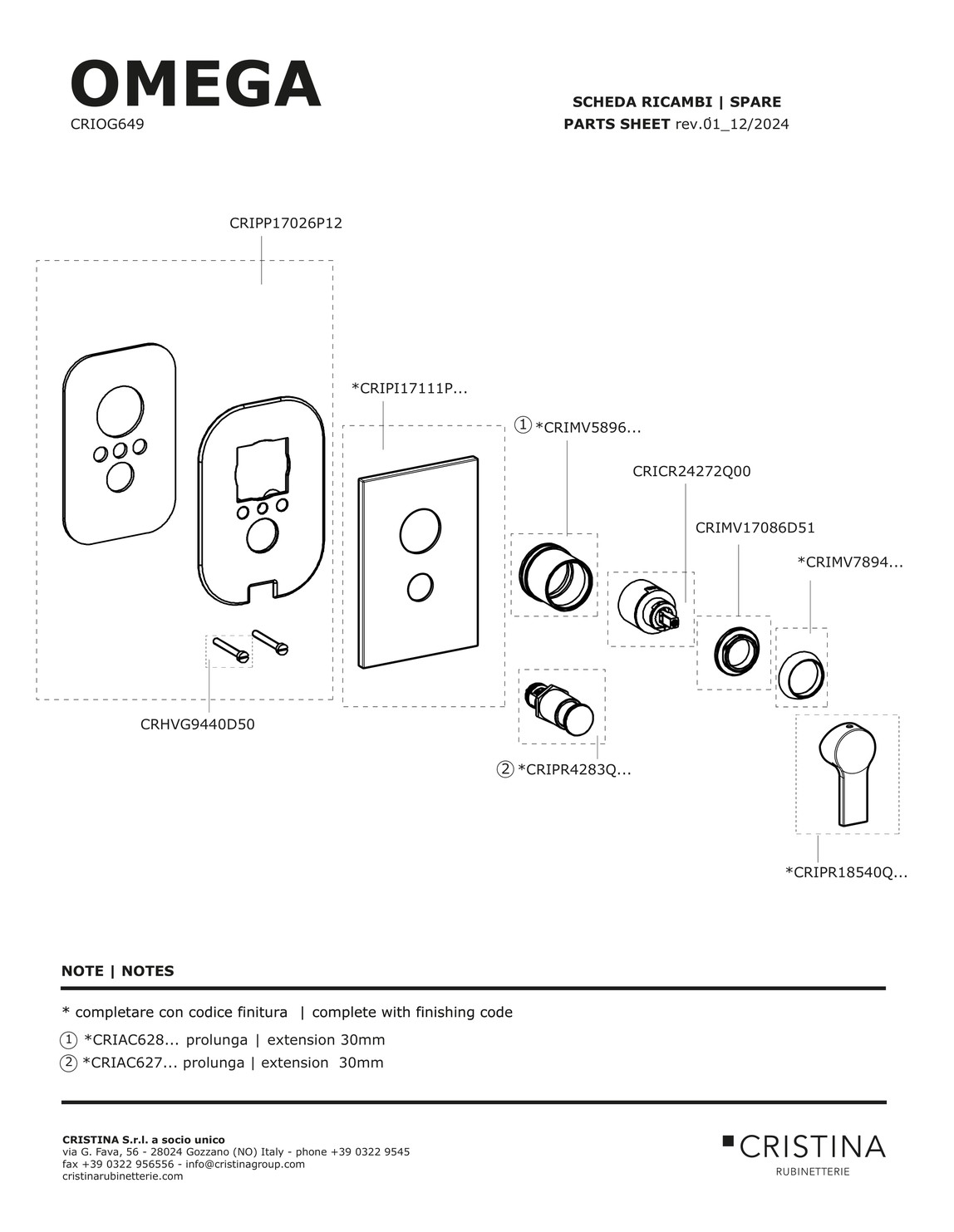 FACADE DOUCHE OMEGA 2 SORTIES ABS CHROME COMPLET