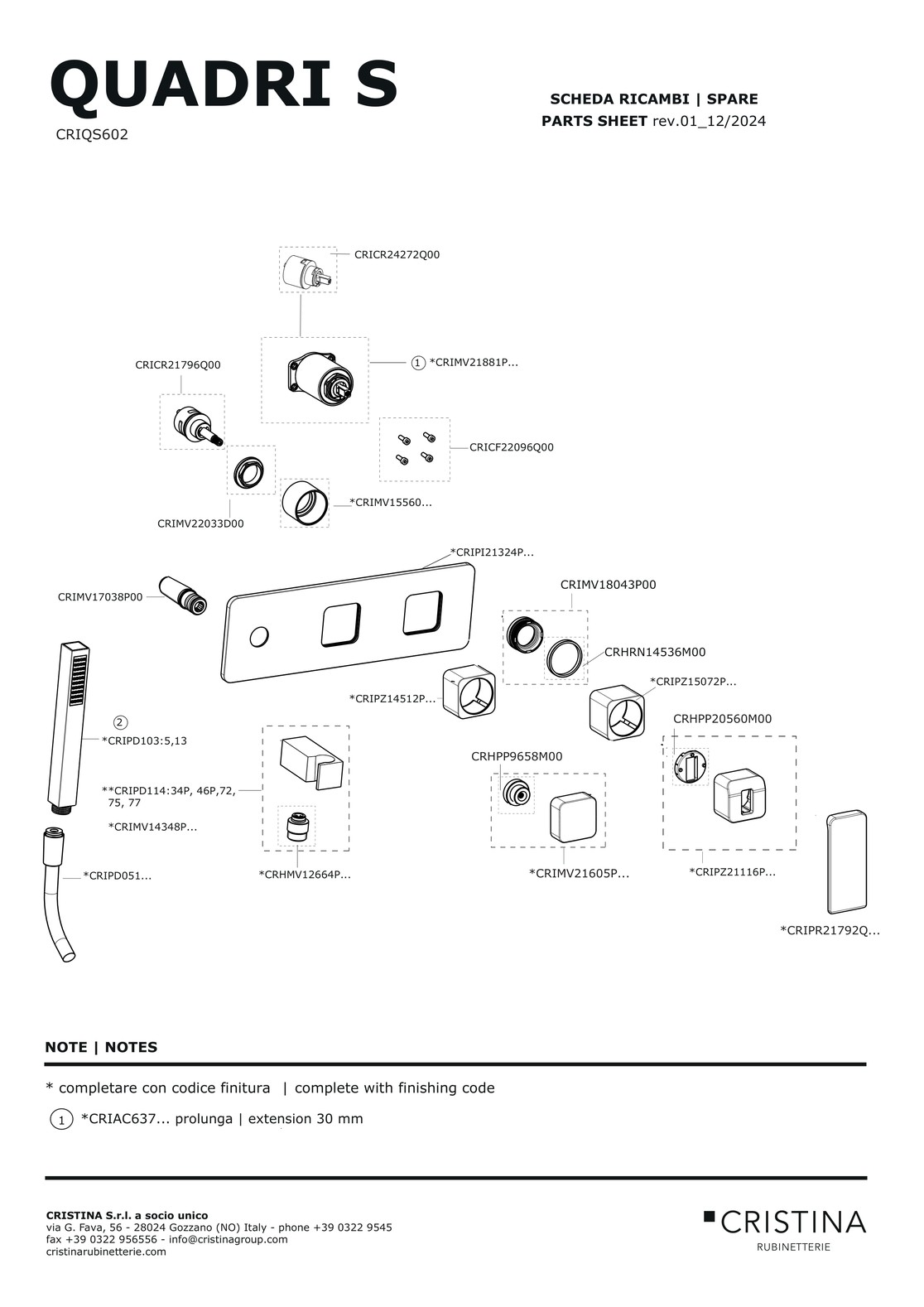 FACADE EXTERNE QUADRI S DOUCHE MURALE 2 SORTIES SS MECANISME
